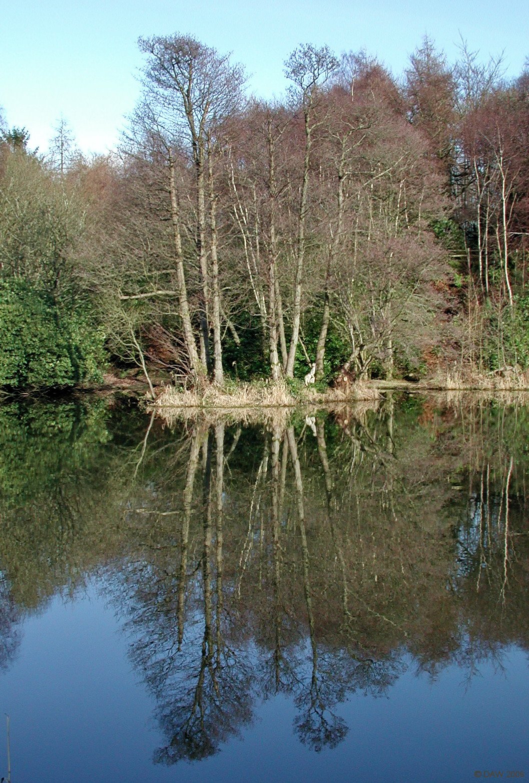Reflections in the pond at Finlaystone Country estate on a bright winter day.