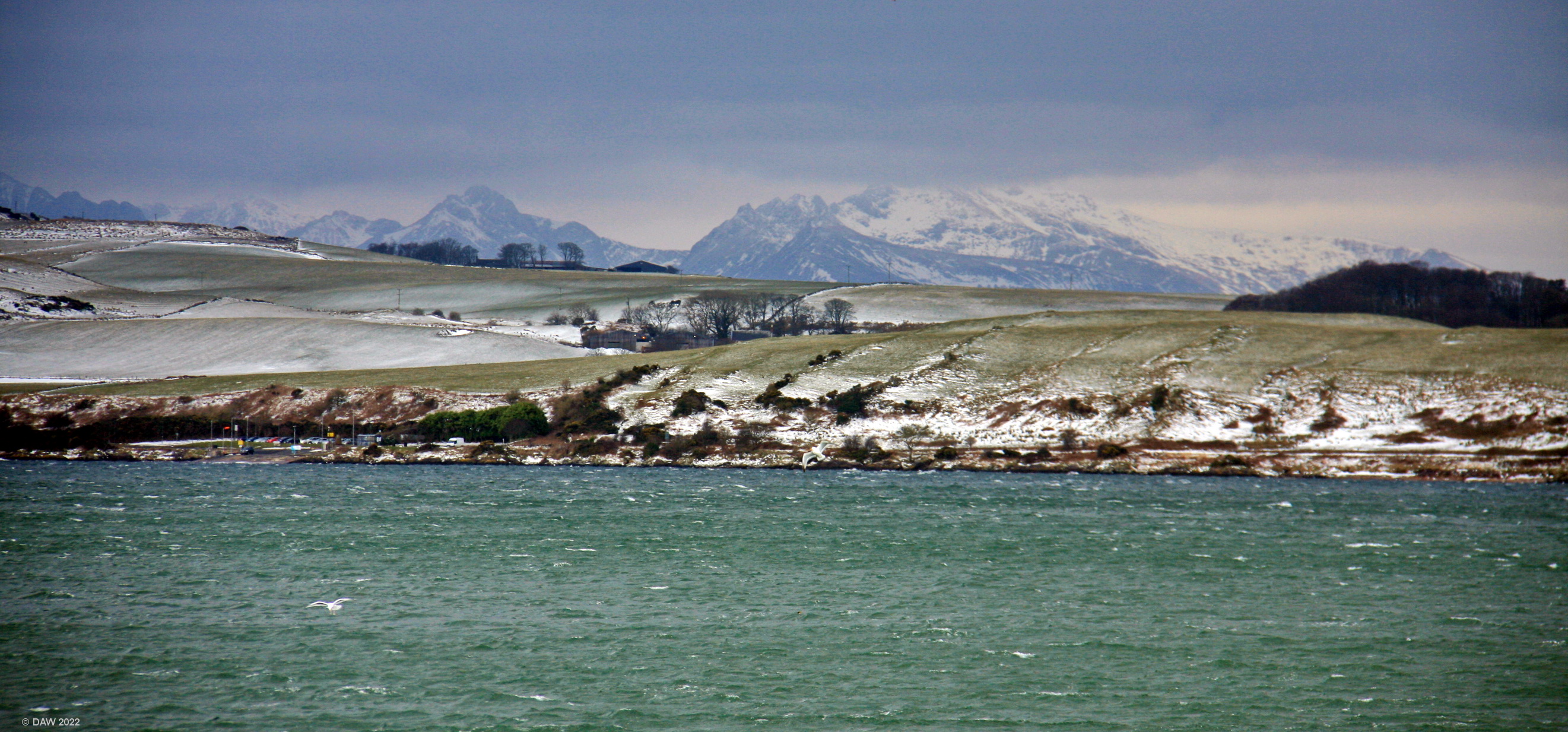 A view of the Islands of Great Cumbrae and Arran from Largs seafront.