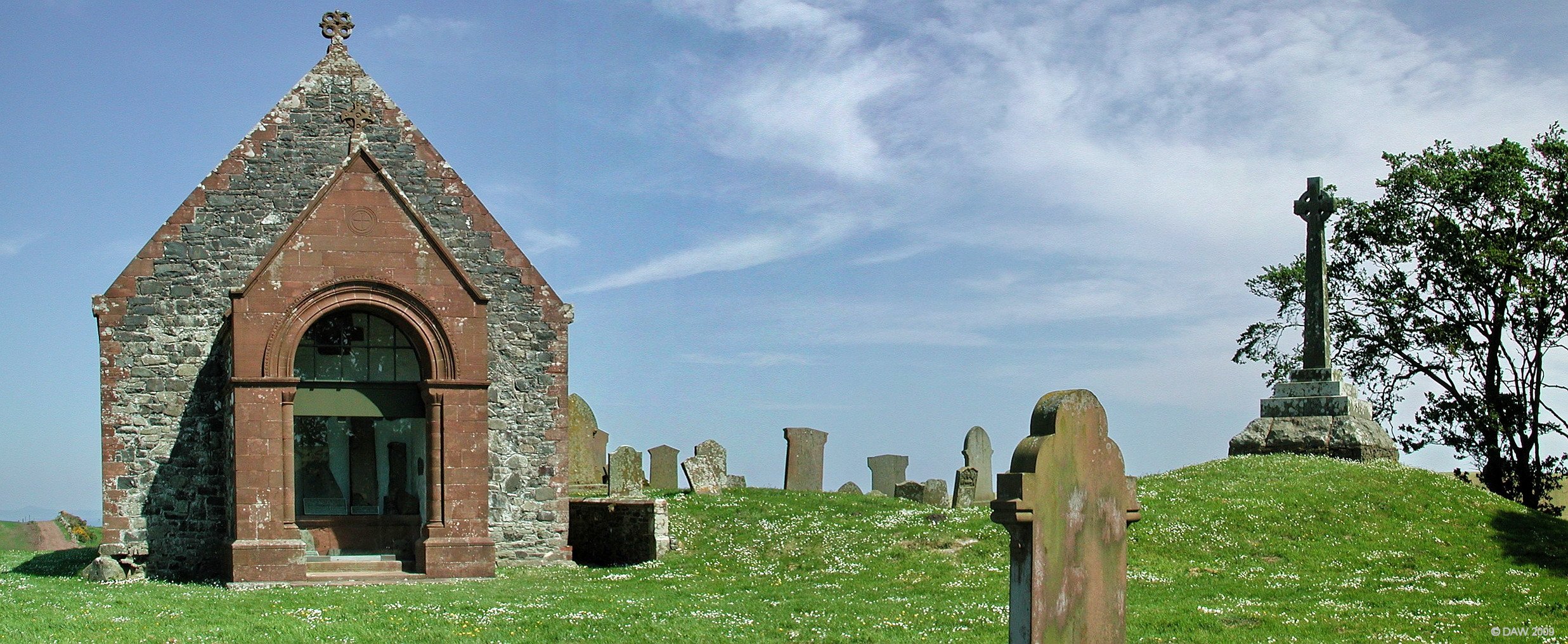 Kirmadrine is located in the ancient parish of the Rhinns of Galloway. This chapel dates from the 19th century but the original one it replaced dates from the 13th century. This area is thought to be one of the earliest Christian communities in Scotland, inside the porch behind glass there are carved Christian stones that date from the 5th century. Map location.