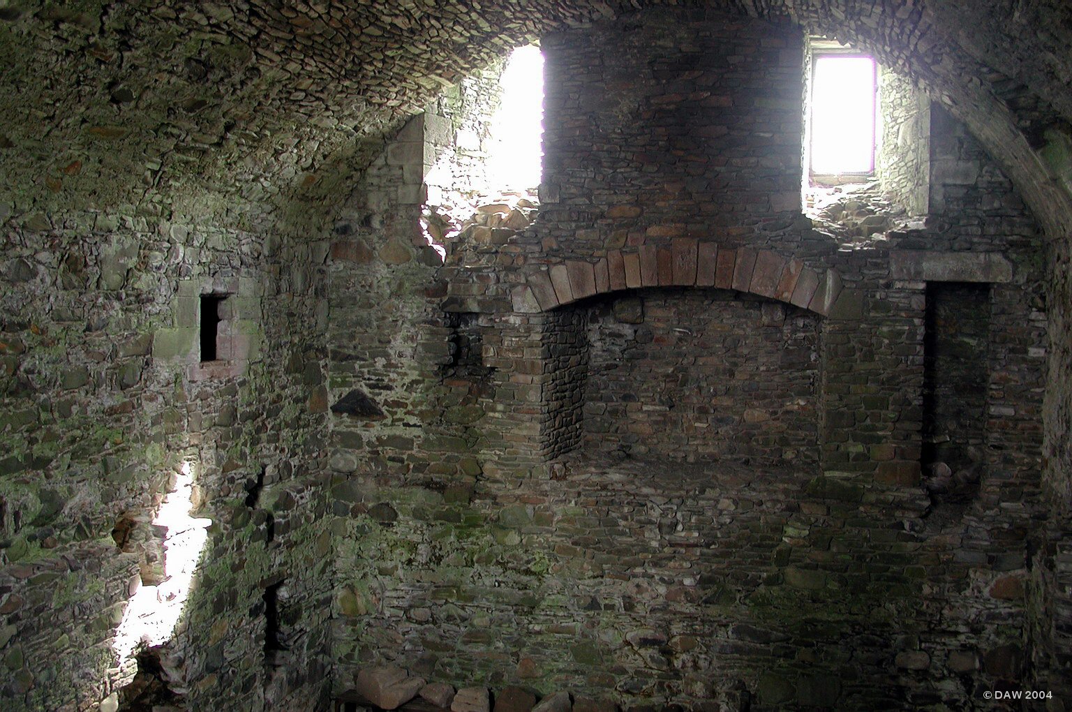 This view of Threave Castle shows the vaulted roof inside. The wooden floors have long gone. The Castle was used to house French prisoners during the Napoleonic wars.