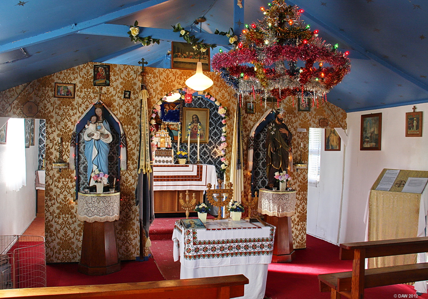 Possibly the only Ukranian Chapel in Scotland, it was built by the prisoners of war who stayed at Hallmuir POW camp between 1947 and 1950.  The Chapel still presents an authentic Ukranian feel, even down to the tinsel chandelier.  It is still in use by the local Ukranian community who were unable to return home due to the Stalanist regime.  They stayed in Lockerbie and Lochmaben, married local girls and brought up their children to respect their traditions.