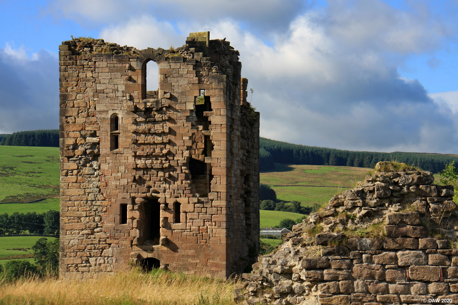 Built by the Crichton family in the 13th century. The part you see here is the most substantial bit still standing. All the usual culprits apparently visited the castle in its heydays, like Robert the Bruce, William Wallace, Edward I, Mary Queen of Scots and James VI. From the 17th century onwards it fell in to disrepair, the part you see here was partly restored in the late 18th century. Map location.