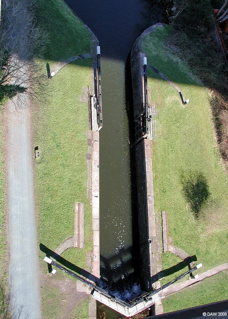 Looking down on a lock on the Forth & Clyde Canal from the Erskine Bridge.