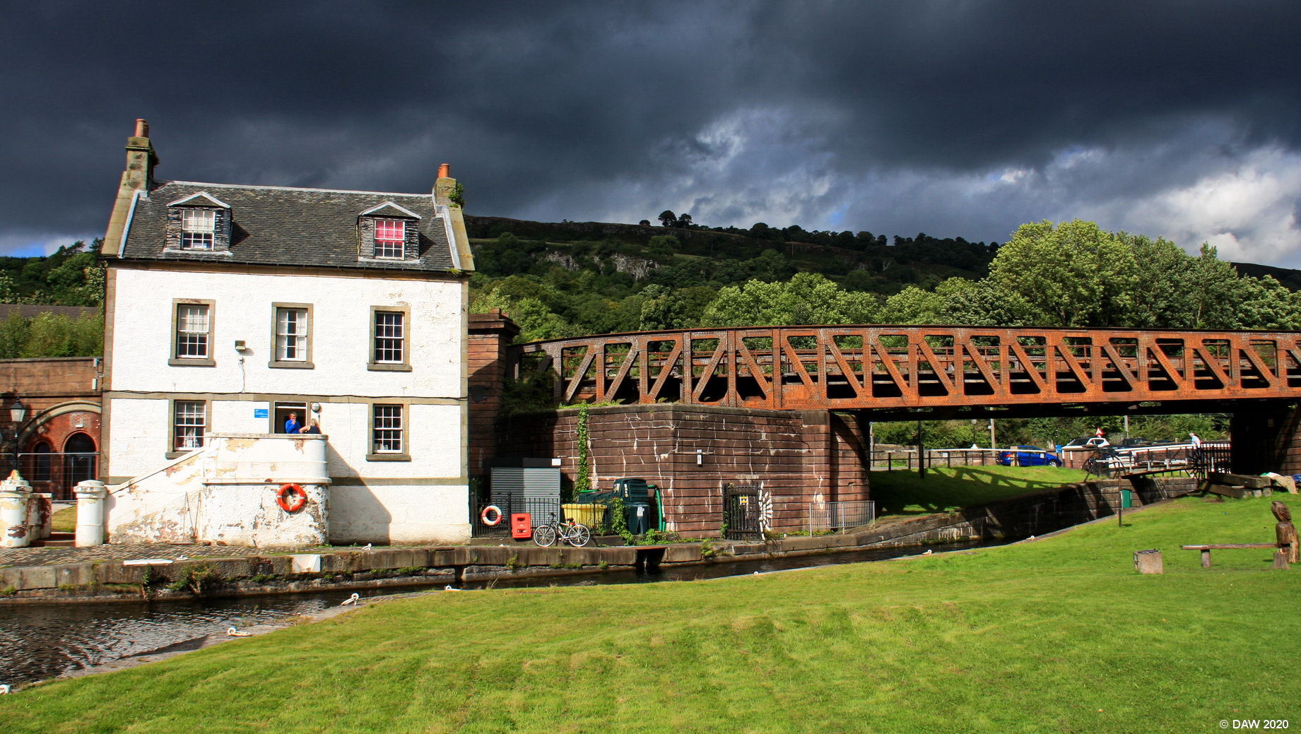 Dark skies over the Custom house at the start of the Forth & Clyde Canal at Bowling.