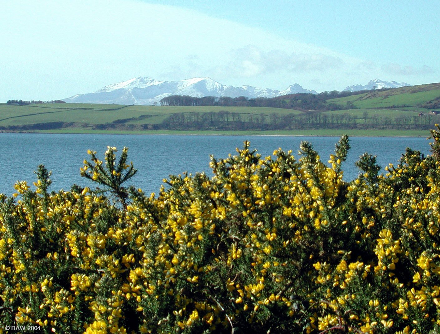 For obvious reasons this area above the promenade on the South Beach of Largs is called Broomfields.  This spring view is looking over towards the Great Cumbrae with the mountains of Arran in the background.