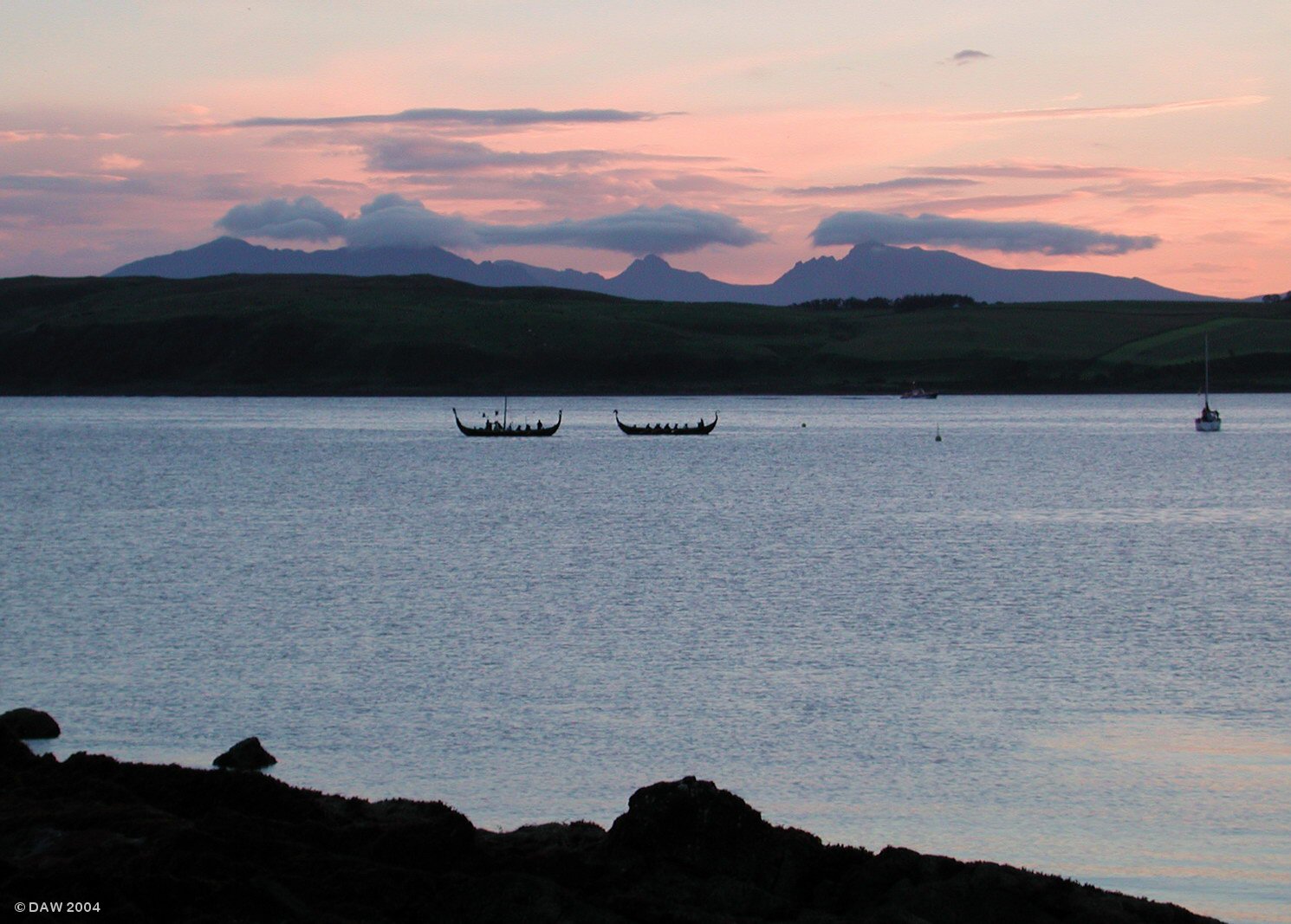 The Great Cumbrae is in the background and behind that the silhouette of Arran. Much to the amazement of all the onlookers some of those on board actually got out the boats and waded the last 100 metres in the freezing cold water!