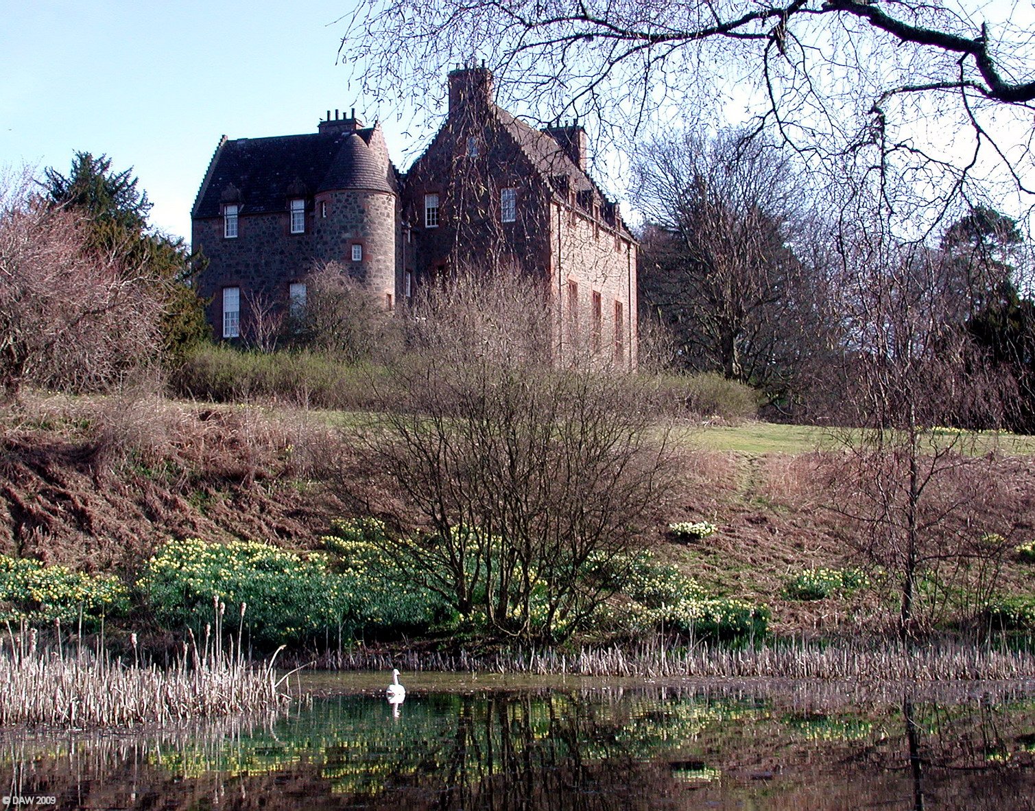 Formakin House, the folly of Paisley businessman John Holmes. He commissioned the building in 1903, but by 1912 he had ran out of money and the house remained empty for many years after. It has now been divided into private flats. The estate grounds are very extensive and include this small loch. In spring time, swaithes of daffodils cover the fields all around the house.