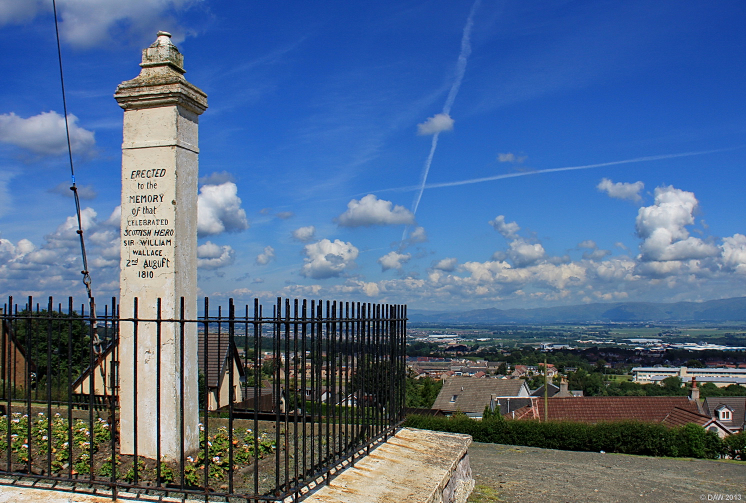 Allegedly the location where William Wallace stood and watched the invading English Army led by Edward I in 1298.  On this occasion the Scots were defeated although the exact location of the battle seems to still be open for debate.  This stone replaced a much older earlier one.  Notice the appropriate saltire flag in the sky. [url=http://www.streetmap.co.uk/map.srf?X=291842&Y=677077&A=Y&Z=115/] Map location. [/url]