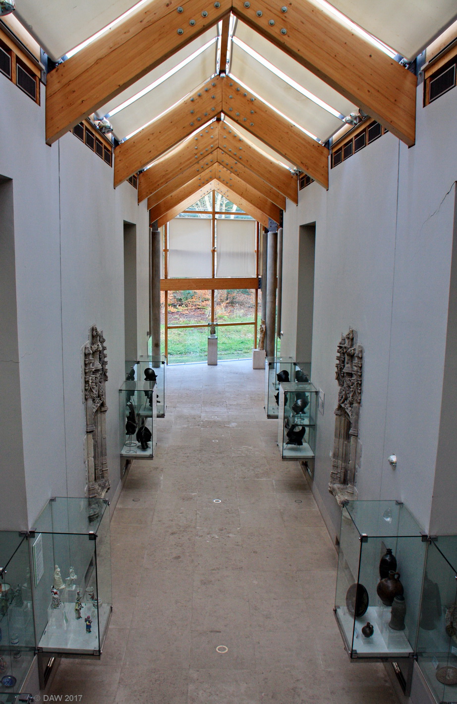 A view inside the Glasgow Burrell Museum. It was built specifically to house artifacts from the Burrell Collection and was opened in 1983. It is now a listed building and is currently undergoing a major refurbishment and will re-open in 2020.