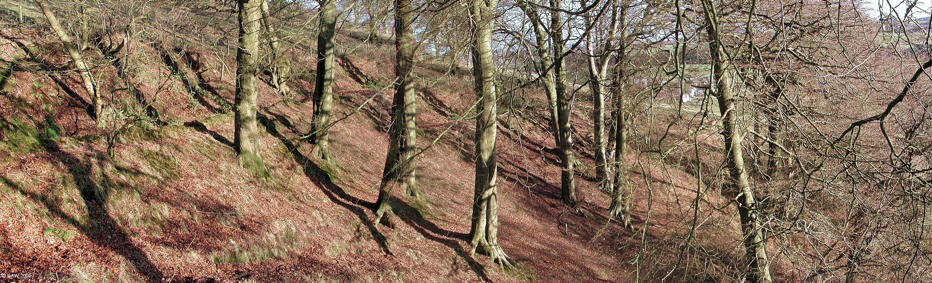 A winter view looking down Killoch Glen, the former Killoch farm can just be made out through the trees.
