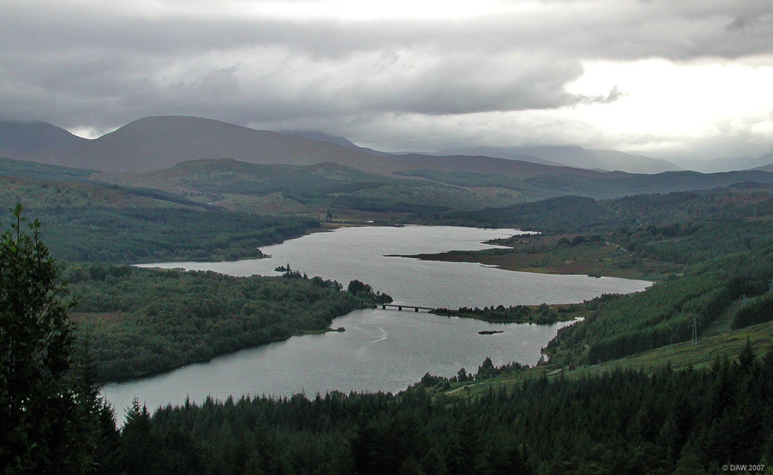 A dreich day at Loch Garry, but the significance of this view requires a little imagination. From this view point the loch appears to take on the outline of Scotland, well almost.