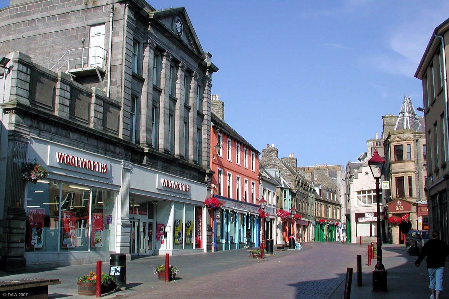 The last town on the east coast of Scotland. Its history dates back to Viking times, the name Wick is thought to come the Norse word Vik, meaning Bay. The streets are somewhat deserted looking because the shops were just closing.