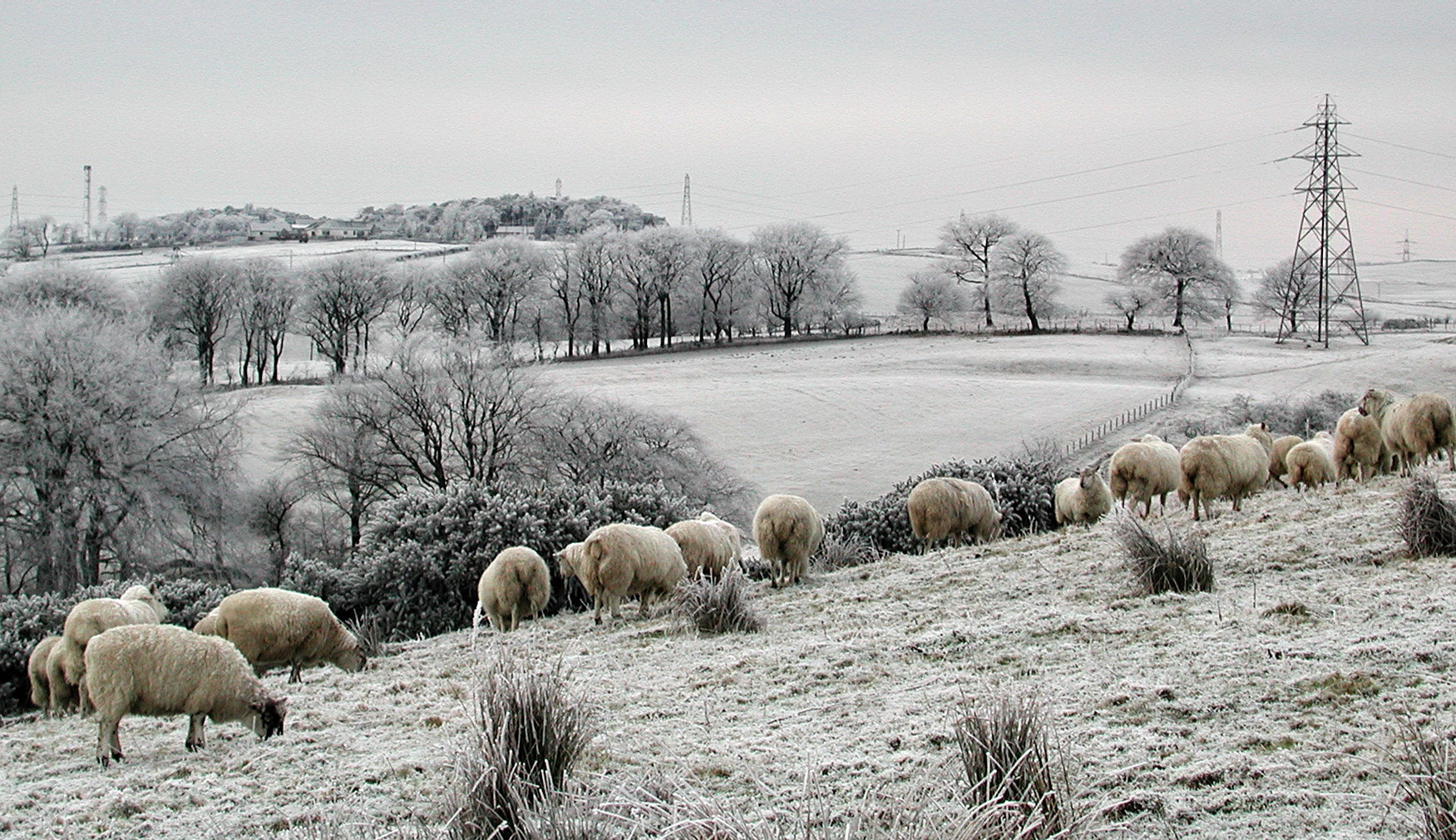 F23 watches over a flock of sheep on a cold January morning.