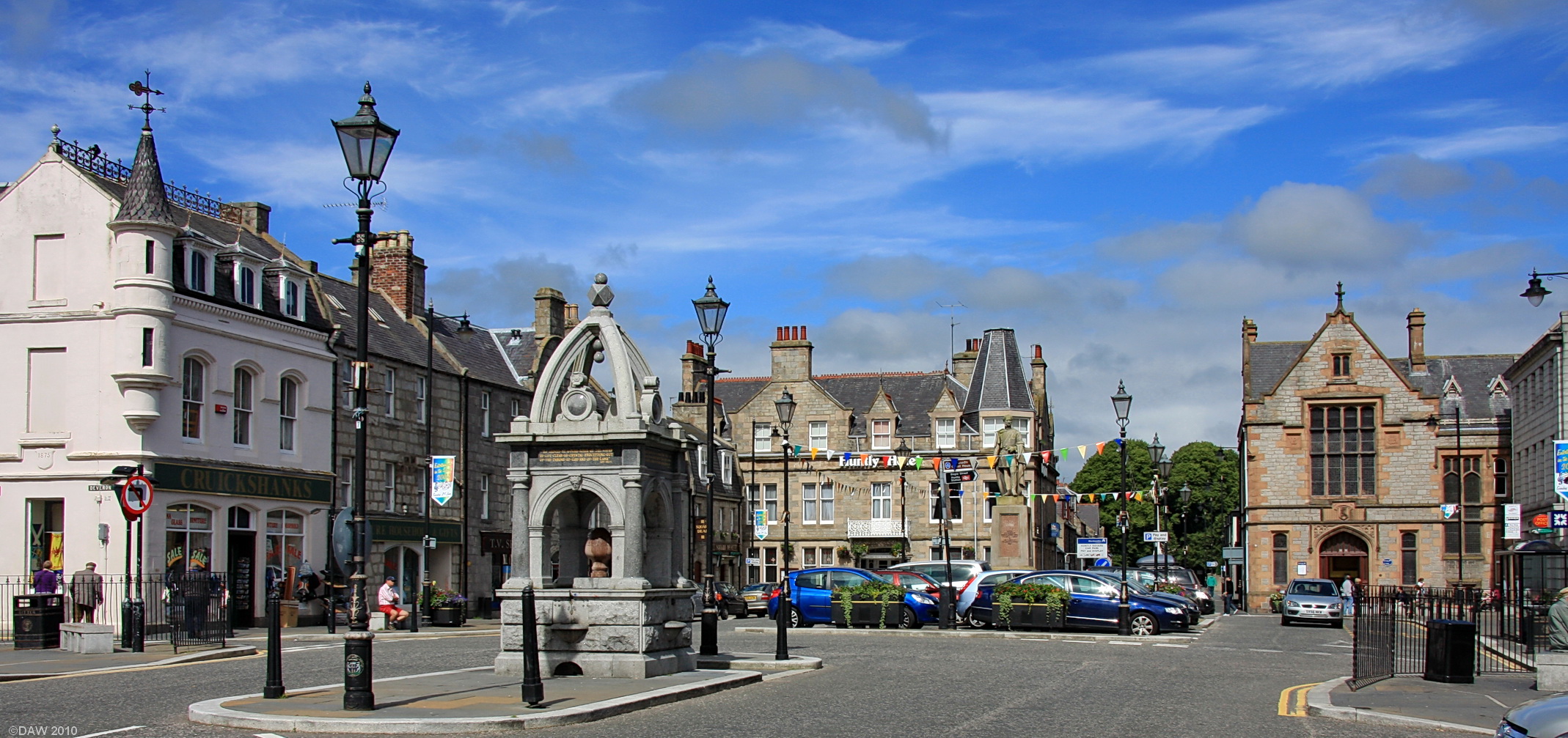 There has been settlement here since the 12th century but the town you see today mainly dates from 1769 when the Duke of Gordon established a planned town. This is also when the name Huntly came in to use, previously it had been known as Milton of Strahbogie. Map location.