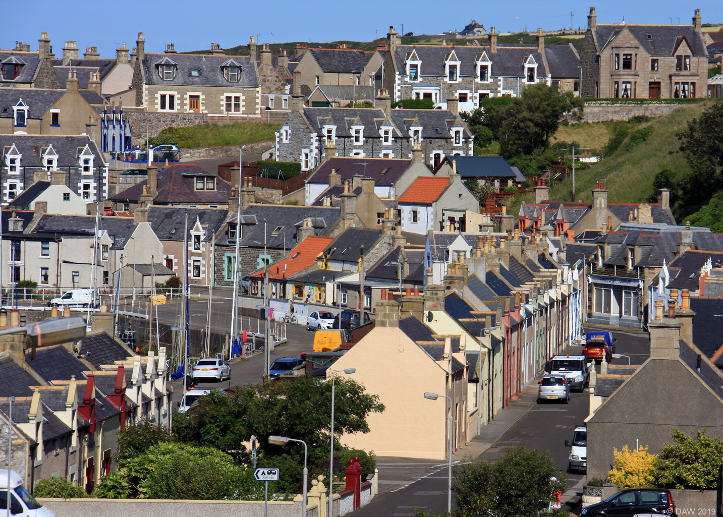 Looking down on the old terraced houses in Findochty from the war memorial.