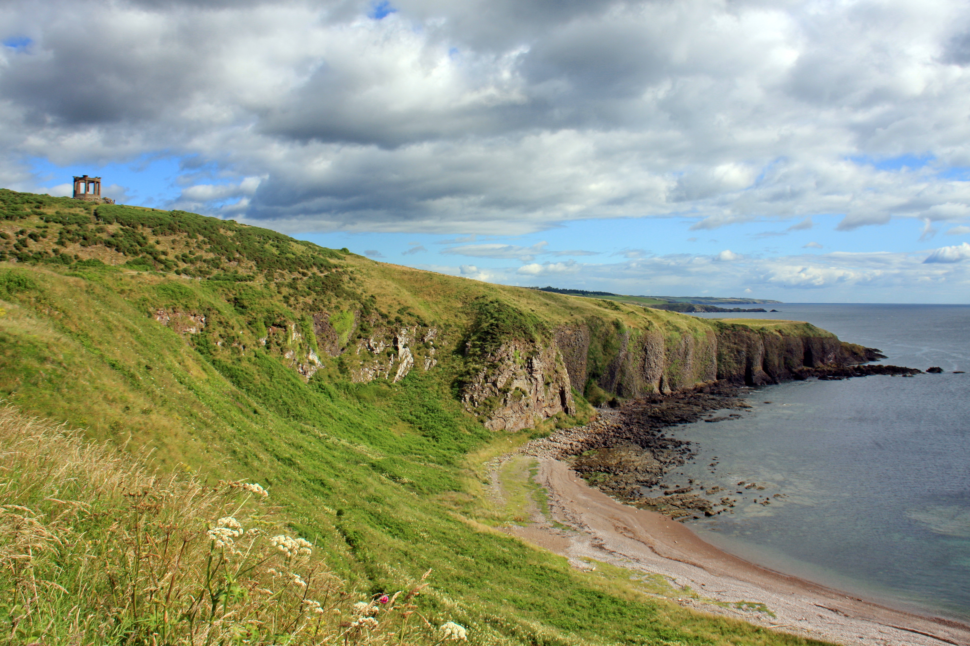 A view of the War Memorial on Black Hill above Stonehaven. Taken from the coastal footpath to the south of Stonehaven.