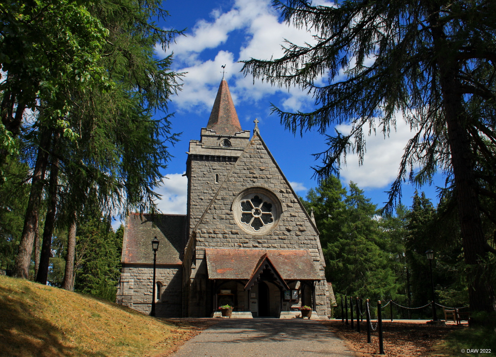Crathie Kirk is famous for being the place the Royal Family worship when they are in residence at nearby Balmoral Castle. Th present church dates from 1893, Queen Victoria. laid the foundation stone. Victoria's decision to worship at the Church initially caused a bit of a scandal since this is a Church of Scotland church and the monarch is the head of the Anglican Church of England. Map location.