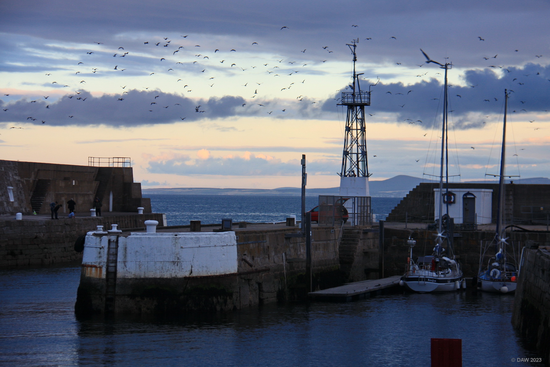 An evening view of Lossiemouth Harbour.