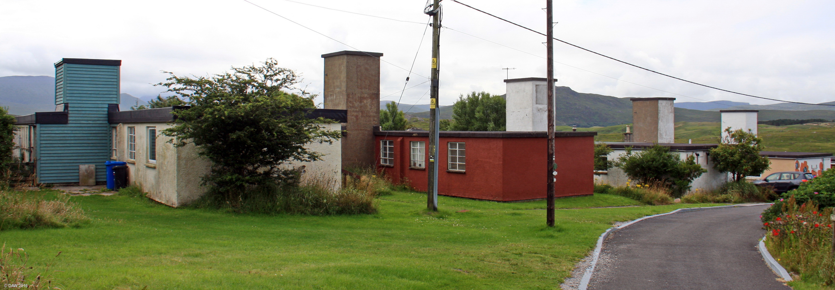 This collection of low level buildings were built in the early 1950's to support the planned ROTOR radar station being built nearby at Faraid Head. Even before work had started here the ROTOR system was obsolete and the site never became active. The site was sold by the MOD in 1964 to the council and is in use today as a craft village. Map location.