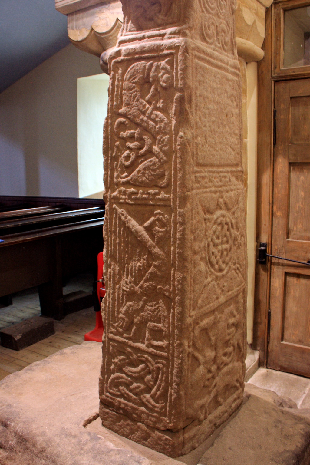A close up view of the carvings on the Dupplin Cross. The Pictish cross dates from 800AD and can be seen inside St Serf's Church, Dunning.