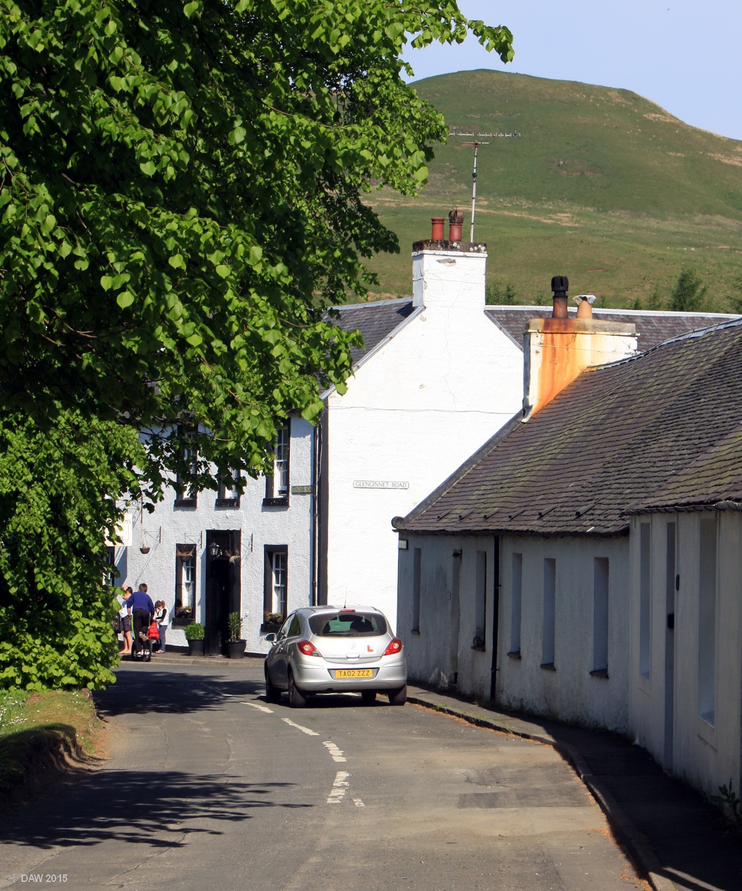 With steep hills on one side and a single track road over them to Girvan, Barr feels like somewhere time has forgotten since it was established in the 17th century. Its population today is only around 110. This view is looking along Changue Road. Map location.