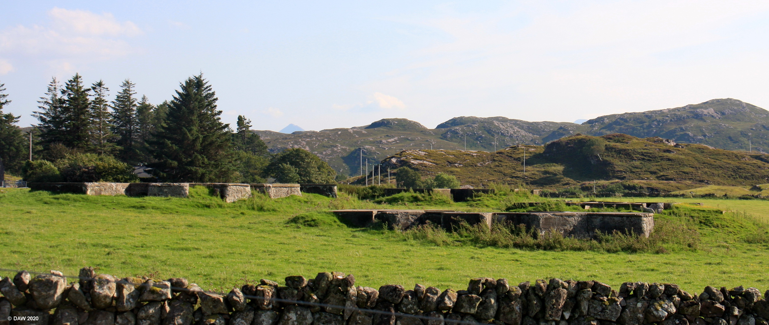 Some of the remains of the anti-aircraft defences that were set up around Loch during World War II. The concrete blocks that remain were the ammunition stores with the gun being located in the centre.