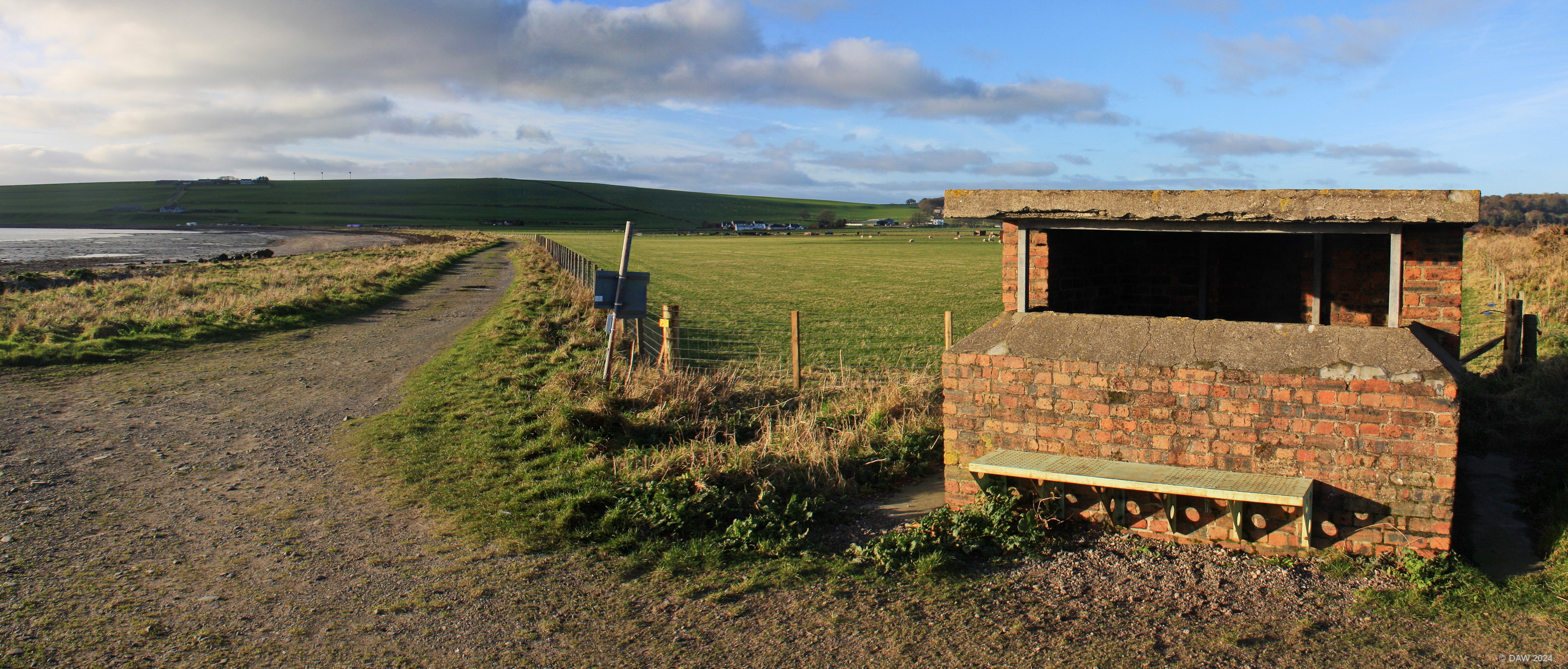 Loch Ryan has many sites dating from the second World War. This one here at Wig Bay is where flying boats were services and brought out the water. The field behind the lookout post still has all the concrete hard standings where the aircraft were parked. Map location.