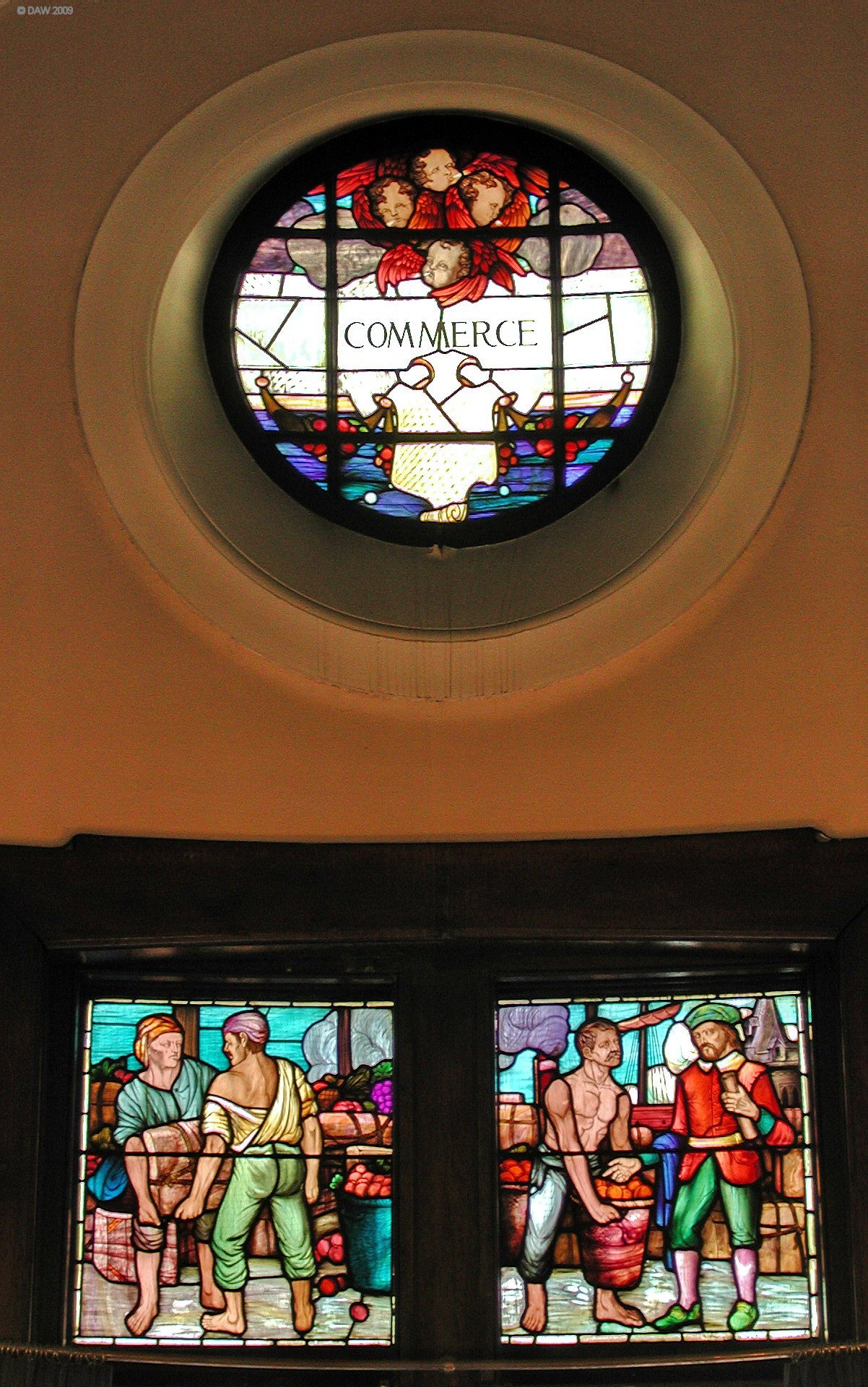 Some of the Stephen Adam designed stained glass windows in the old Clyde Navigation trust building in Glasgow. The Clyde Navigation Trust was formed in 1858 to control dredging and construction of docks on the river Clyde, it later became the Clyde Port Authority and today is known as Clydeport.