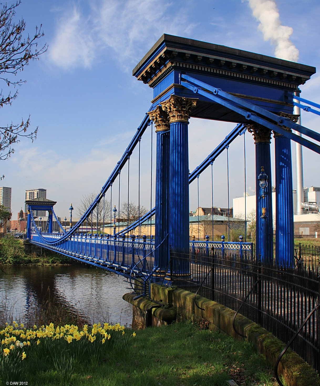 Opened in 1855 to replace a ferry conveying workers from Bridgeton and Calton to Hutchesontown.  The wrought iron structure has a single span of 67 metres. Major structural repairs were carried out by Glasgow City Council between 1996 and 1998.  [url=http://www.streetmap.co.uk/map.srf?X=260050&Y=663867&A=Y&Z=115&ax=260000&ay=664030/] Map location. [/url]