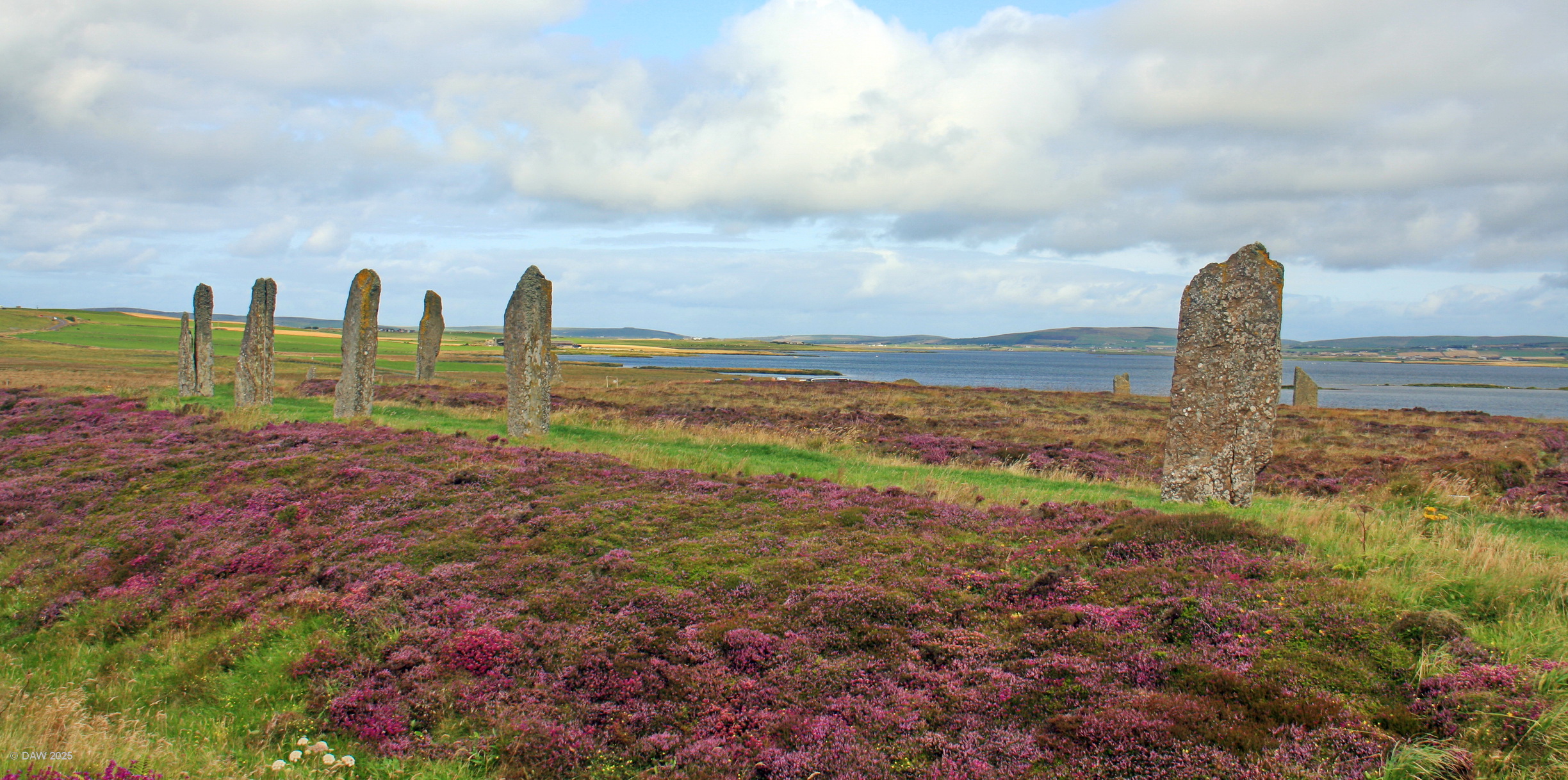 A view of the Neolithic Ring of Brodgar with the Loch of Harray in the background.