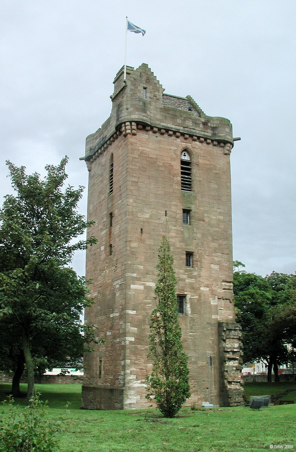 The tower is all that remains of the CHurch of St John possibly dating fronm the 14th century. Robert the Bruce attended a meeting of the Scottish Parliament held here in 1315 after Bannockburn. The church was demolished by the town council in 1726 and Lord Bute restored the ruined tower in 1914. Map location.