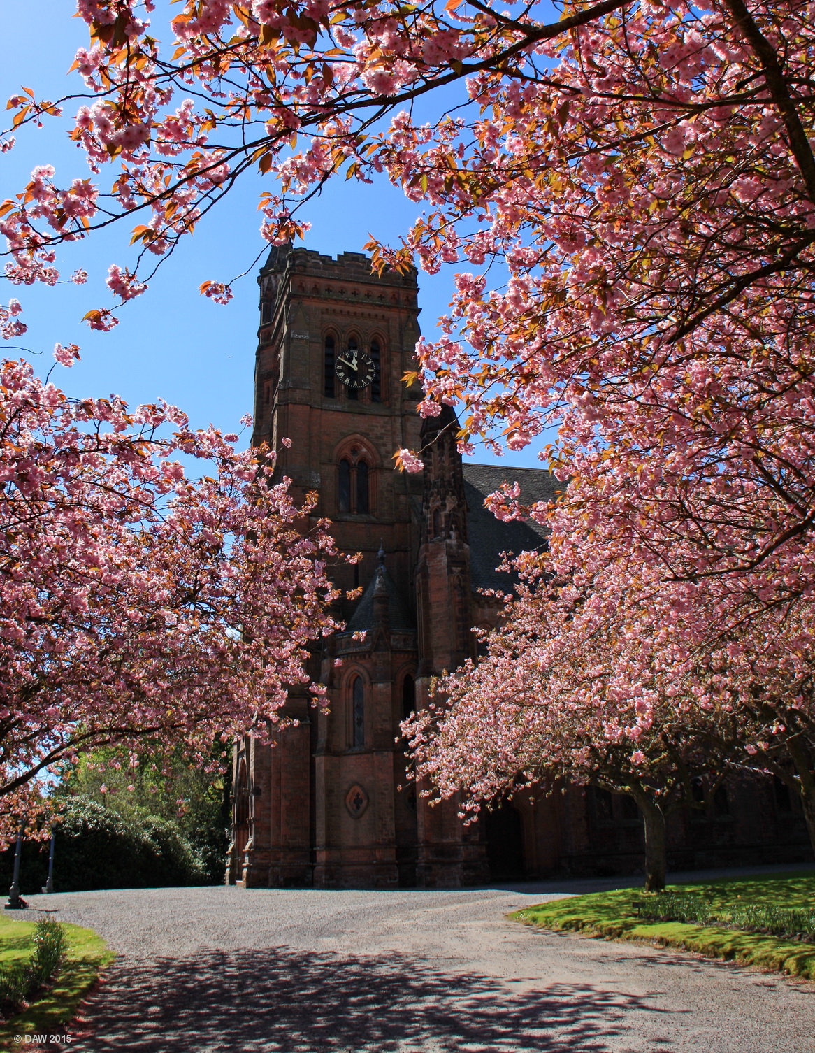 The Clock Tower of St Andrews Church in Moffat. The church opened its doors in 1887. the clock in the tower was added in 1932. There has been a church at this location since 1177.