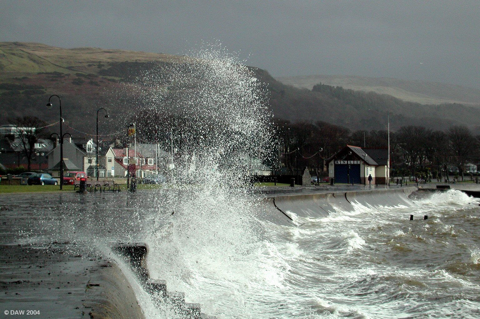 On the North Promenade looking towards the lifeboat station. There's an old joke that says you could fire a cannon along the prom in Largs on a wet day, this lets you see its based on some truth.