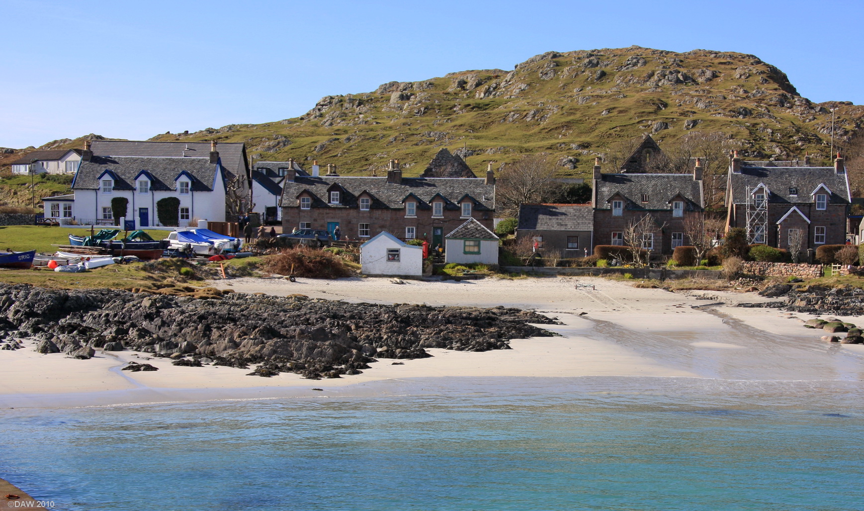 The idyllic scene that you see as the ferry arrives at the Isle of Iona.  Baile Mor is the only settlement and is just a collections of houses and the odd shop.  The island is only about 3 miles long but does boast two hotels.  Despite its small size some 140,000 visitors make the crossing from Mull every year.  [url=http://www.streetmap.co.uk/map.srf?X=128672&Y=724005&A=Y&Z=120/] Map location. [/url]
