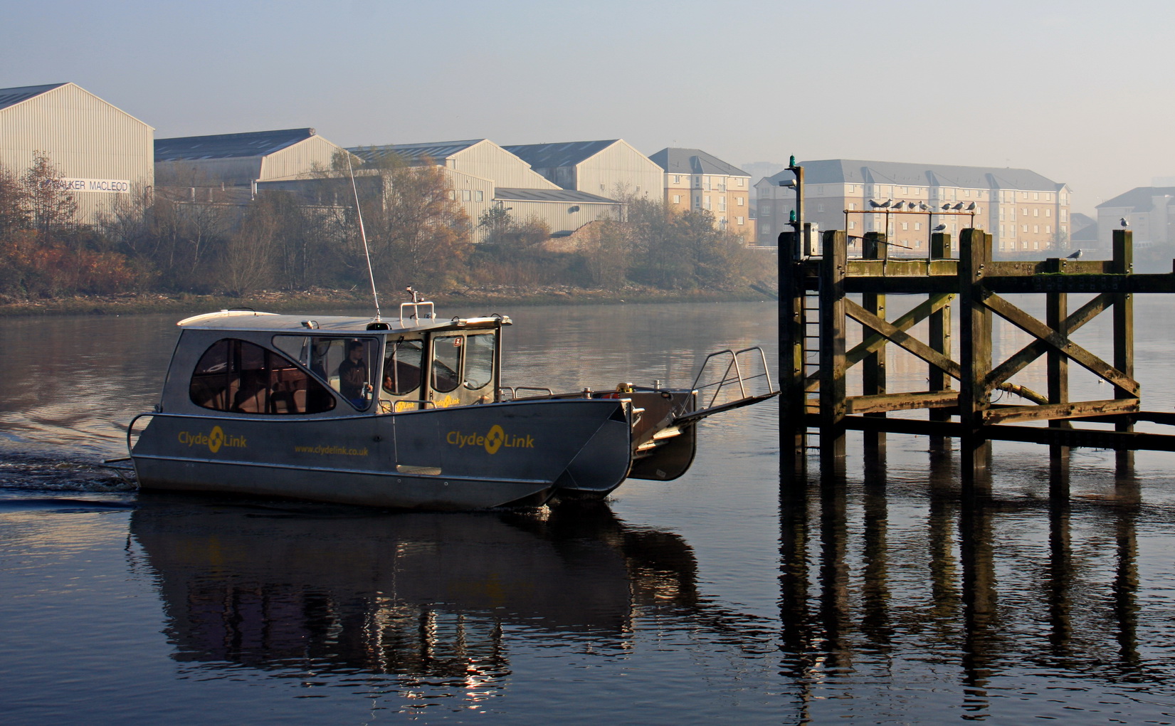 The Clydelink Renfrew ferry. Prior to 2011 Strathclyde Passenger Executive ran a subsidised passenger ferry between Yoker and Renfrew but budget cuts meant that the subsidy could no longer be afforded. The service is presently with a private company using a boat much the same size as the previous one.