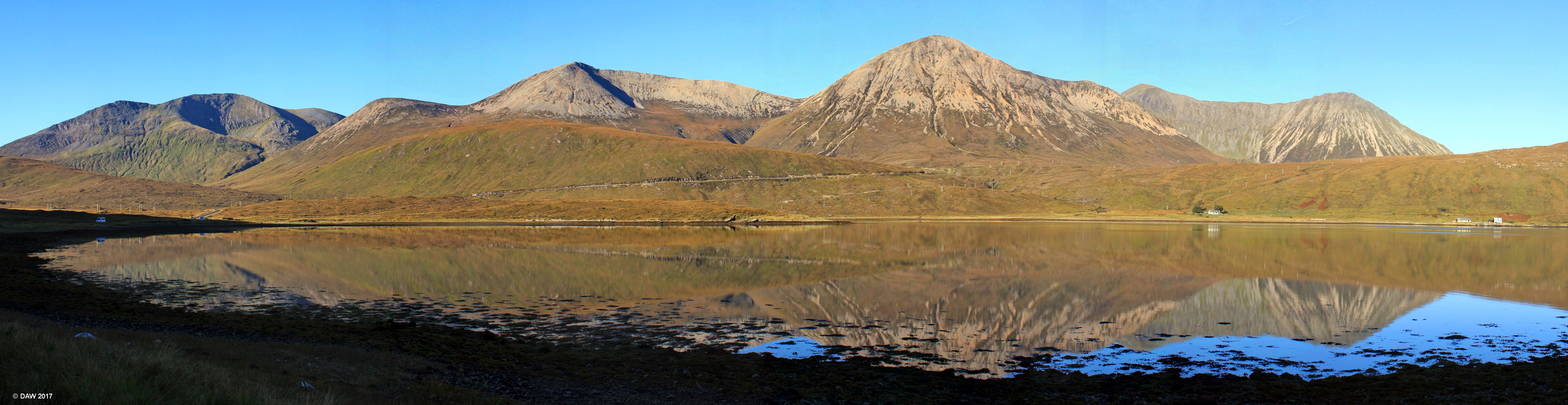 Looking across Loch Ainort on a cloudless October morning. The highest peak you see here is Beinn Dearg Mhor at 731m.