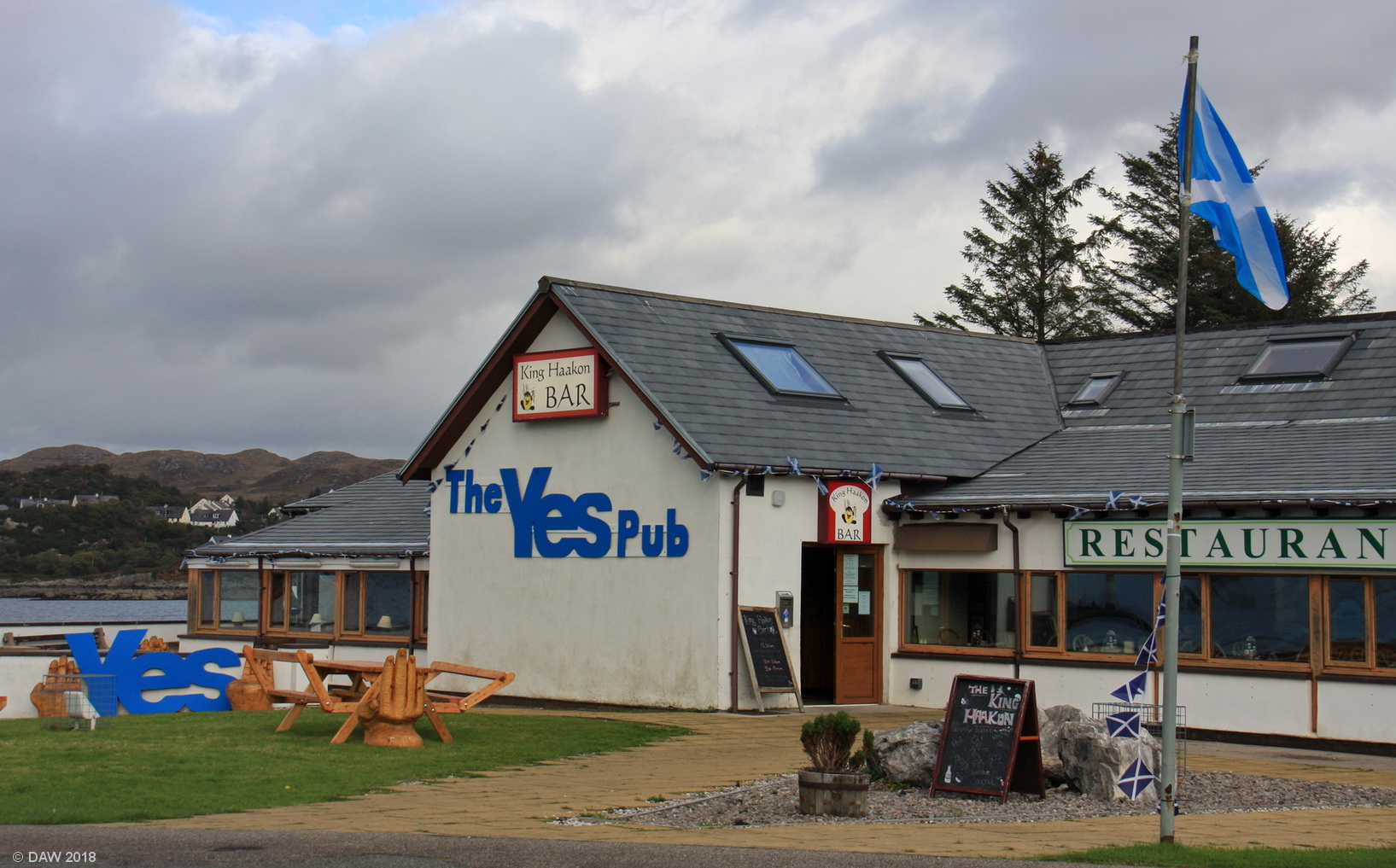 Taken in 2014 when the King Haakon Bar in Kyleakin on the Isle of Skye became The Yes Pub.
