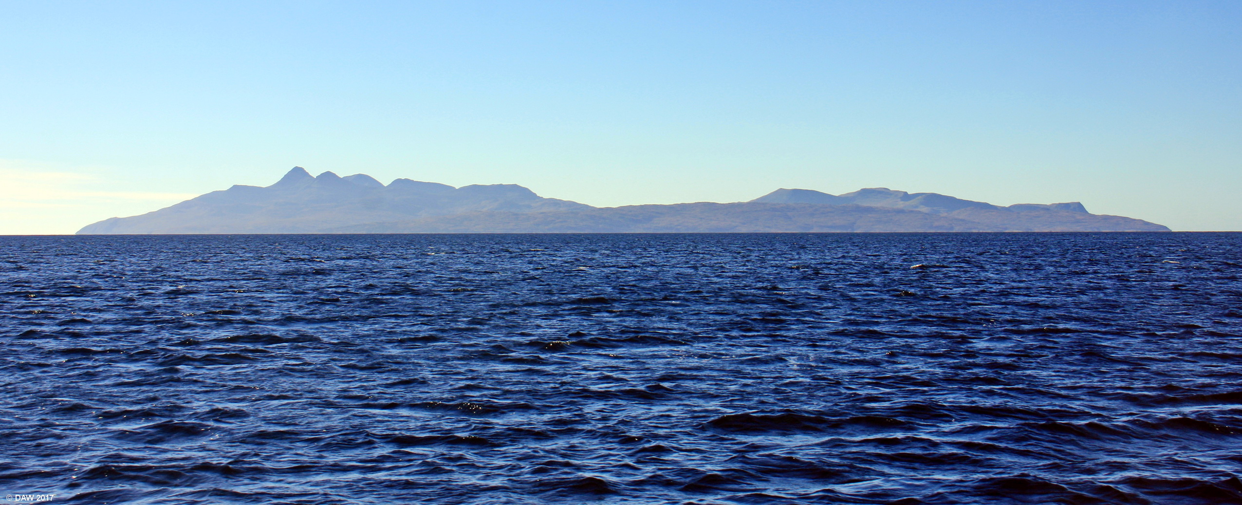 Rum is the largest of the Small Isles but is inhabited by only a few dozan people. The highest peak is Askival at 812m. This view is taken from Loch Scavaig, some 15km away.