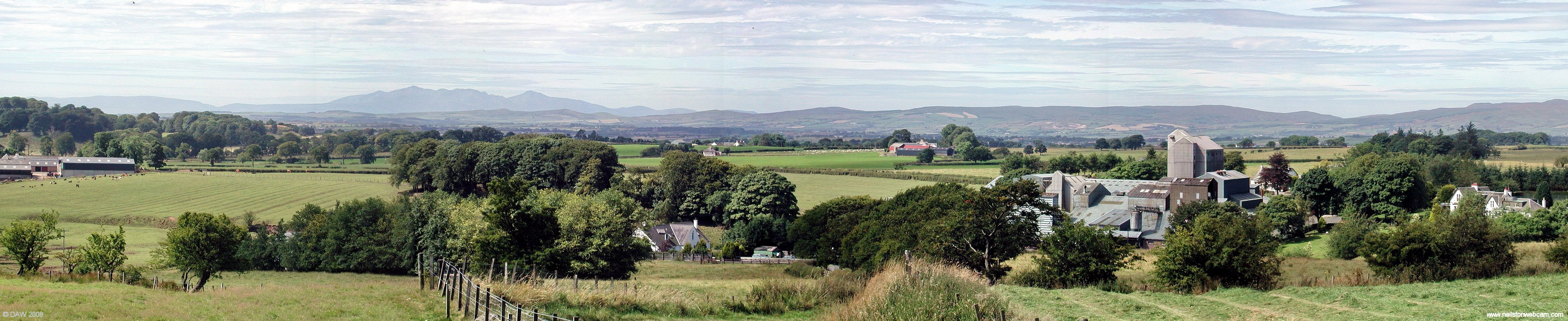 The Isle of Arran from near Dunlop. The large building in the foreground is Howies of Dunlop Grain Mill but since this photo was taken in 2005 the Mill has been demolished.