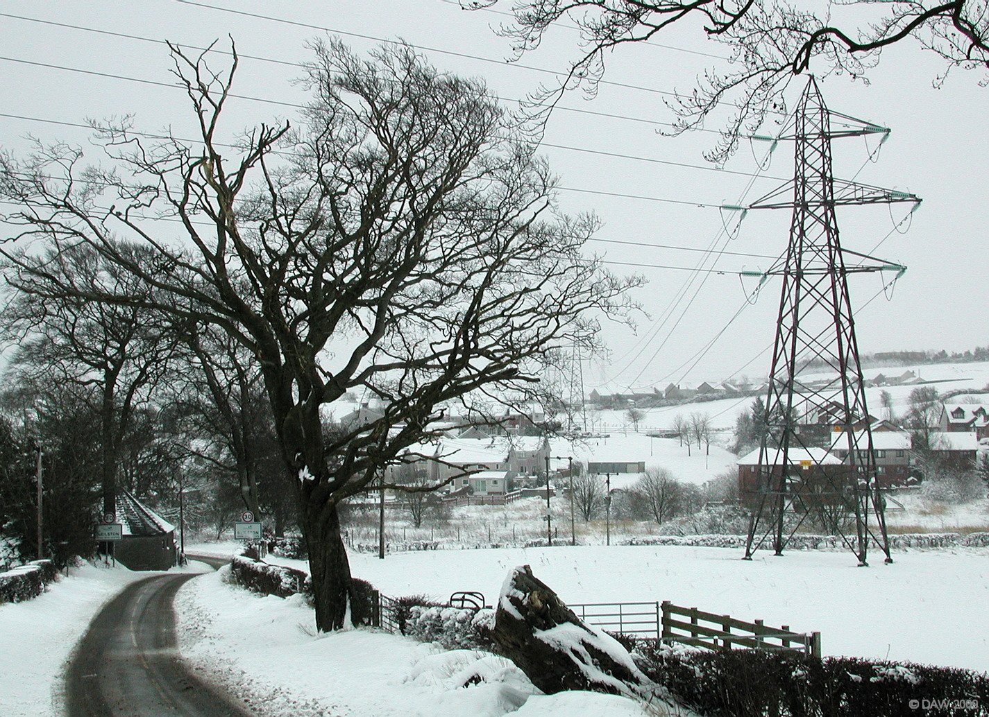 On a cold March morning AY34 helps carry the power that will heat someone's home in some distant location west of Neilston.