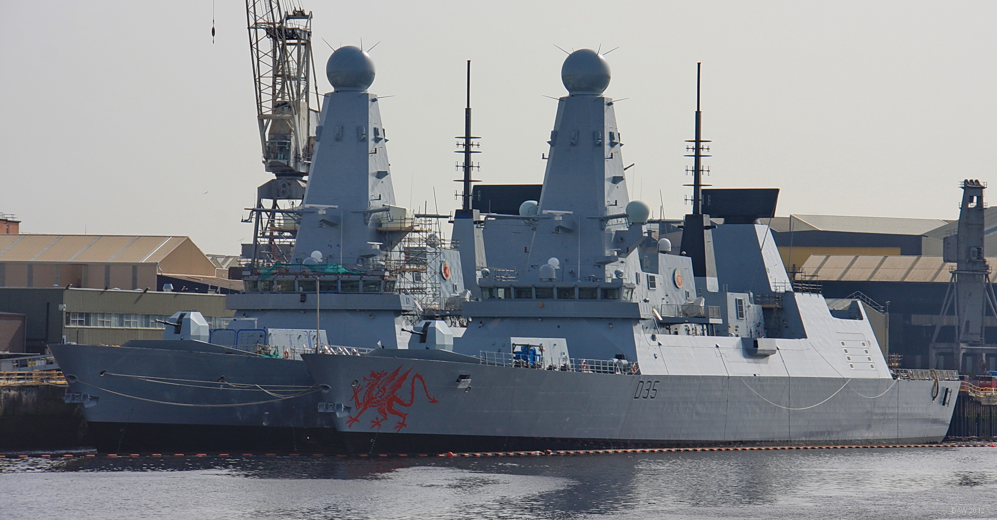 Taken in early 2011 when Dragon was undergoing trials and Defender was undergoing final fitting out.