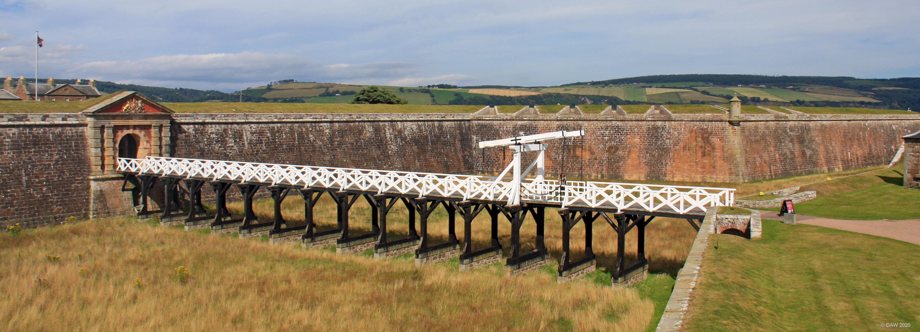 To get to this point you would already have had to defeat considerable defences in front of it. The ditch wasn't water filled, it didn't need to be, anyone down there is wide open to canon and musket fire from the walls above. These state of the art defences were never tested, by the time the fort was completed the threat of any further Jacobite rebellion had receded.