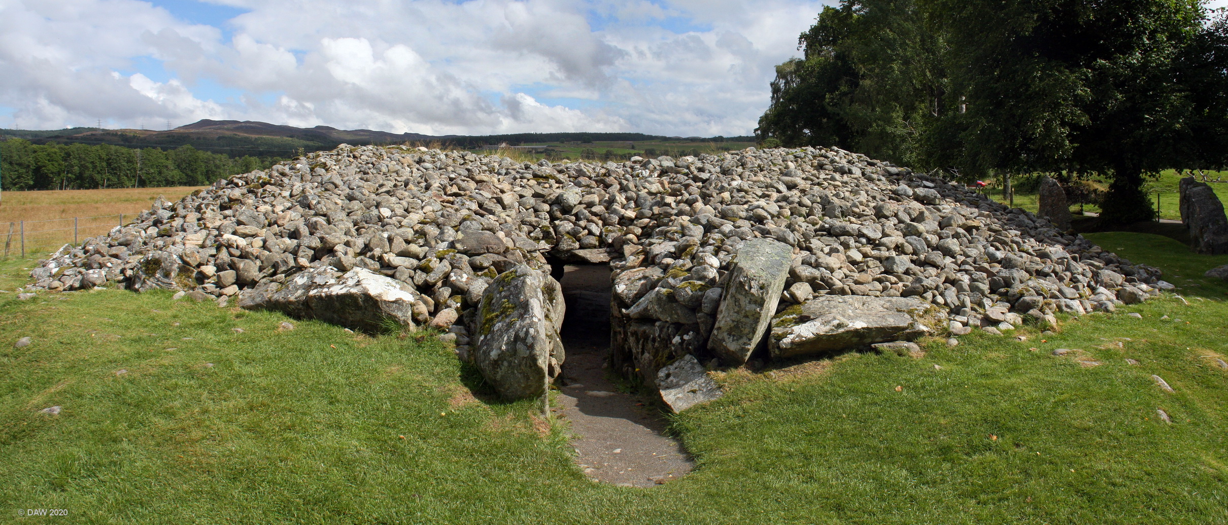 Corrimoney is one of the best preserved chambered Cairns you will find, the passageway roof is till intact although the chamber in the centre is open. It is very similar to the "Clava" cairns with its passageway facing south west. It is thought to date from 2,000 BC. Map location.