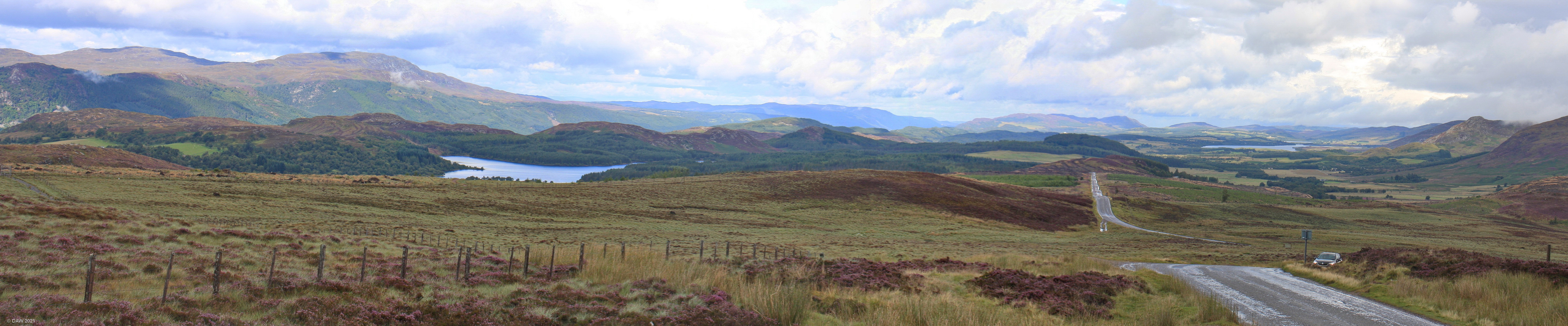 Most people take the A82 along the west shore of Loch Ness, but I'd recommend the smaller road along east side. It mostly follows the route of one of General Wade's military roads and isn't so busy allowing you to stop and take in the views. Loch Ness is low down behind the hills on the left here, Loch Mhor is in the distance on the right. Map Location.