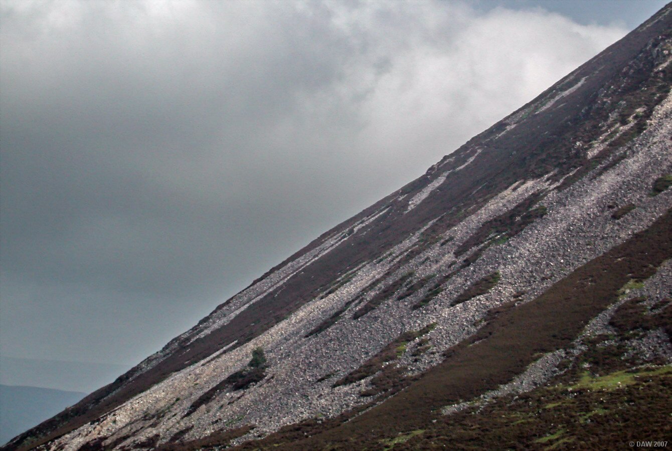 The rather steep sides of Creag an t-Sean Ruigh as seen from the A93 road near the Cairnwell pass.