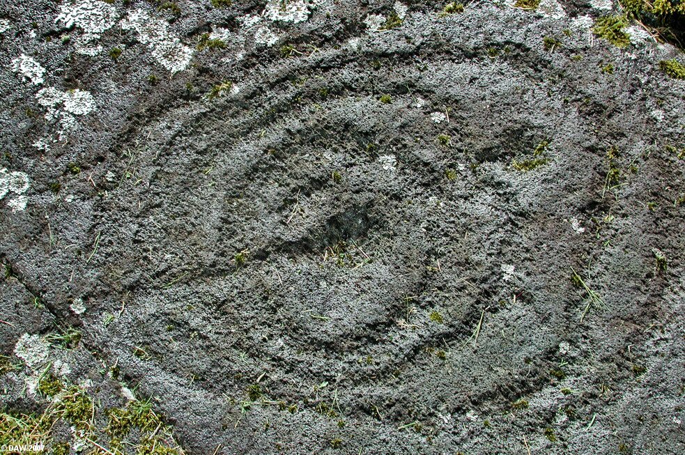 Just one of a whole collection of ring carvings on an exposed sheet of rock at Achnabreck. It is one of the most prolific examples of such carvings in UK, difficult to date but thought to be around 4,000 years old.