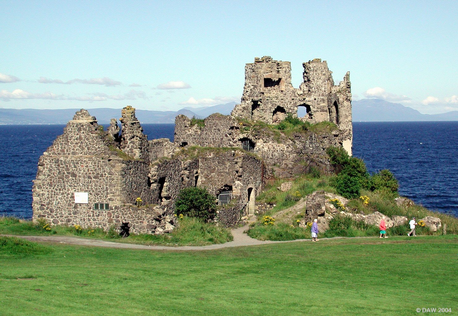 Perched on a cliff edge near the village of Dunure with views looking over the Firth of Clyde towards Arran. The origonal castle dates from around the 13th century. The tower was added in the 15th century. The castle has been in a ruined state since the end of the 17th century.