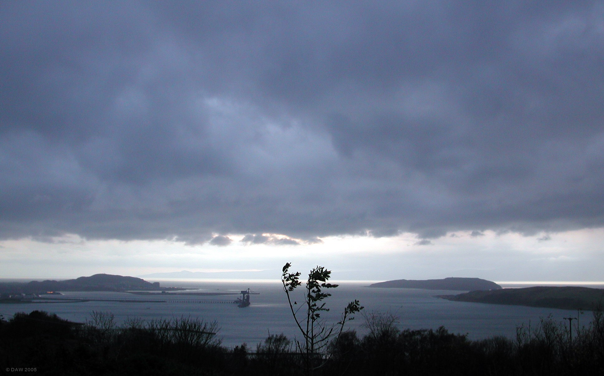 Taken from the Haylie Brae above Largs. The Great and Little Cumbrae Islands are on the right, Hunterston Peninsula is on the left.