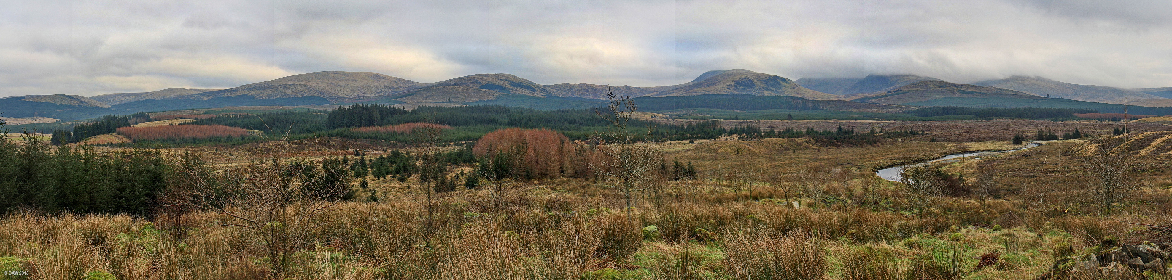 Sometimes its good to take the long road to places you know and you discover remote countryside like here between Straiton and Glentrool. The highest distant hill would be Merrick at 843m but its obscured by low cloud.