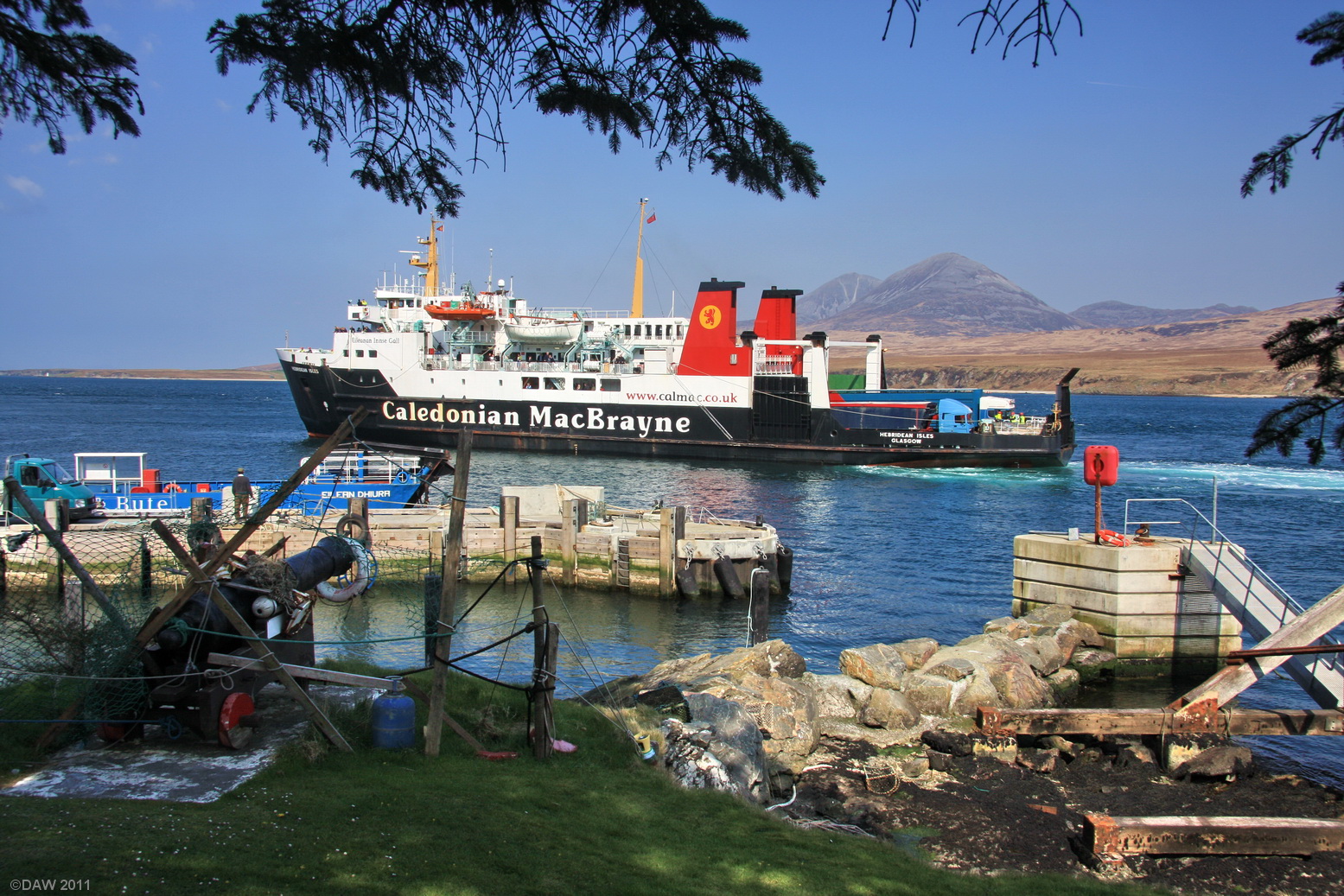 M.V. Hebridean Isles arriving at Port Askaig on Islay. The Paps of Jura can be seen in the back ground.